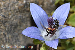 Glockenblumen-Scherenbiene (Chelostoma rapunculi) auf Mont Cenis-Glockenblume (Campanula cenisia)