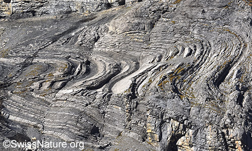 Faltungen aufweisen. Solche Verfaltungen können in Felswänden interessante Formen hervorbringen.